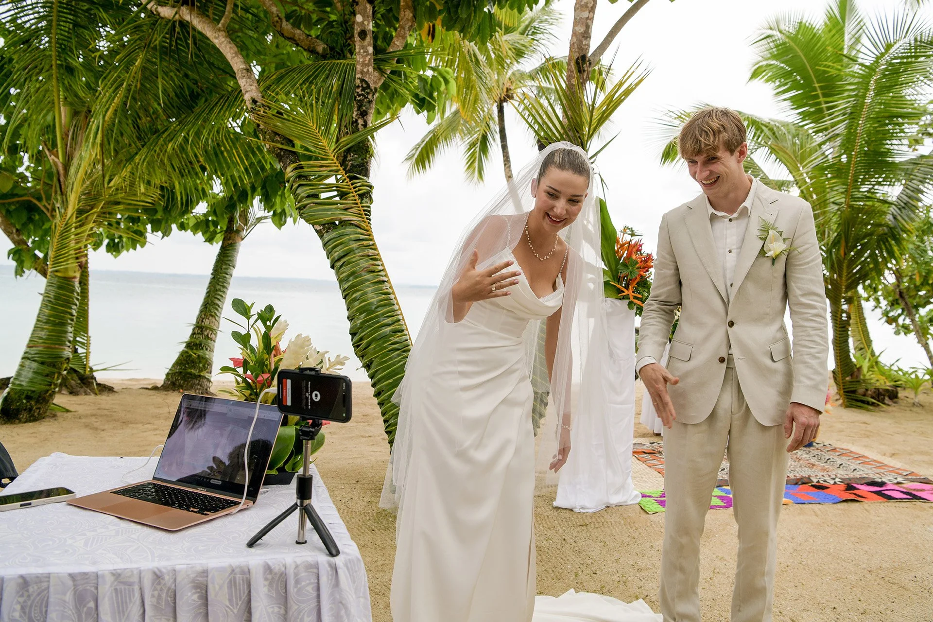 Ada wore a timeless, elegant dress that moved effortlessly in the island breeze. She looked radiant — classic yet perfectly suited to the relaxed island setting. Franck matched her grace with understated elegance, and together they were simply stunning. There was a quiet confidence and maturity in the way they held each other — the kind that comes from years of shared adventures, challenges, and growth.
